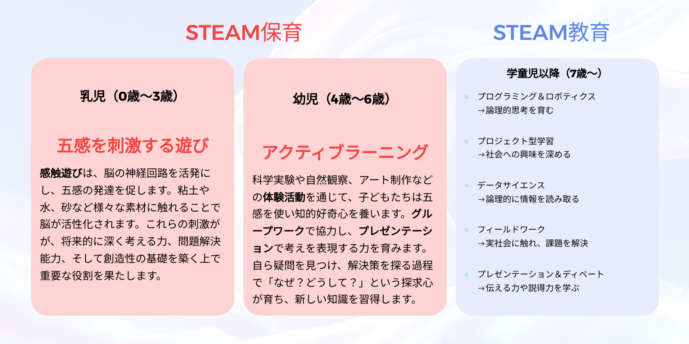 教科を横断的に学び、創造的・論理的に思考することで未知の課題やその解決方法を見出す教育手法のことです。